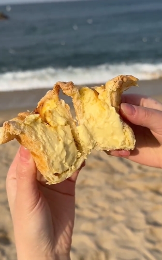 한 입 베어 물면 안쪽의 노오란 커스터드가 촉촉하게 퍼지면서도 밀도감 있게 담겨 있어요.